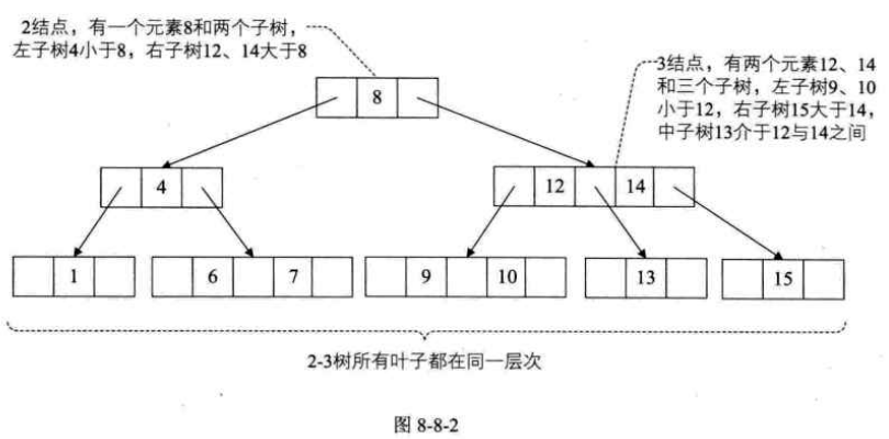 \quad \quad 另外,2-3树中所有的叶子都在同一层次上。如下图,就是一棵有效的2-3树。