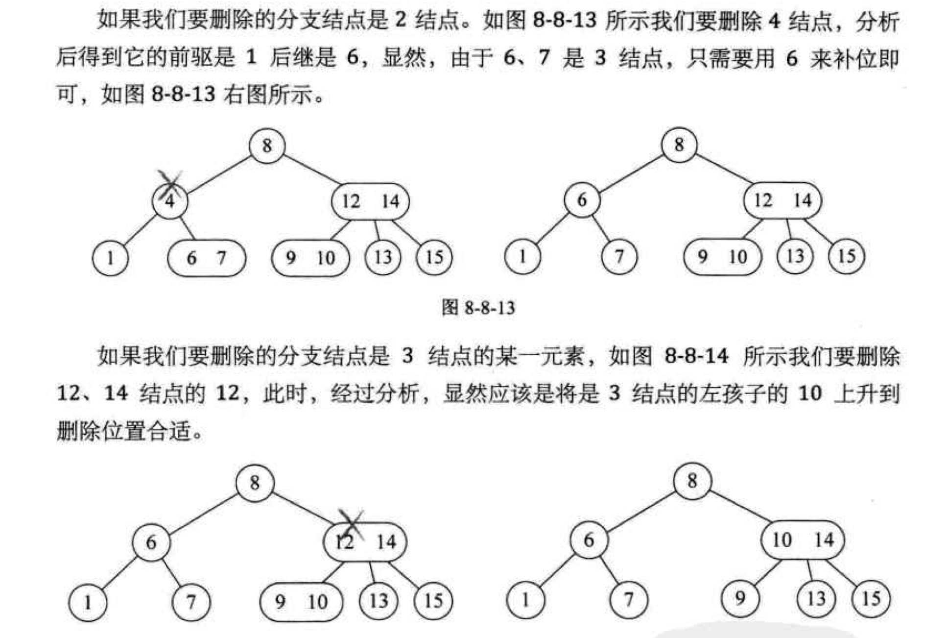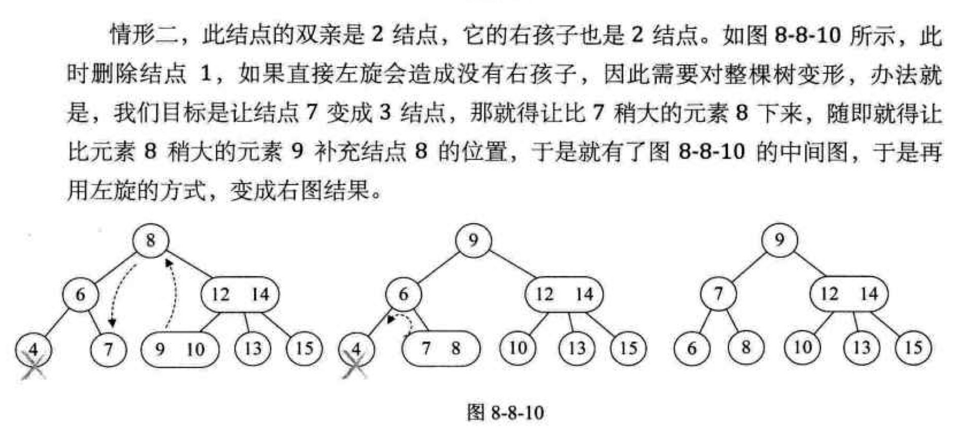 \quad \quad 一个2结点包含一个元素和两个孩子(或没有孩子),且与二叉排序树类似,左子树包含的元素小于该元素,右子树包含的元素大于该元素。不过,与二叉排序树不同的是,这个2结点要么没有孩子,要么就有两个,不能只有一个孩子。